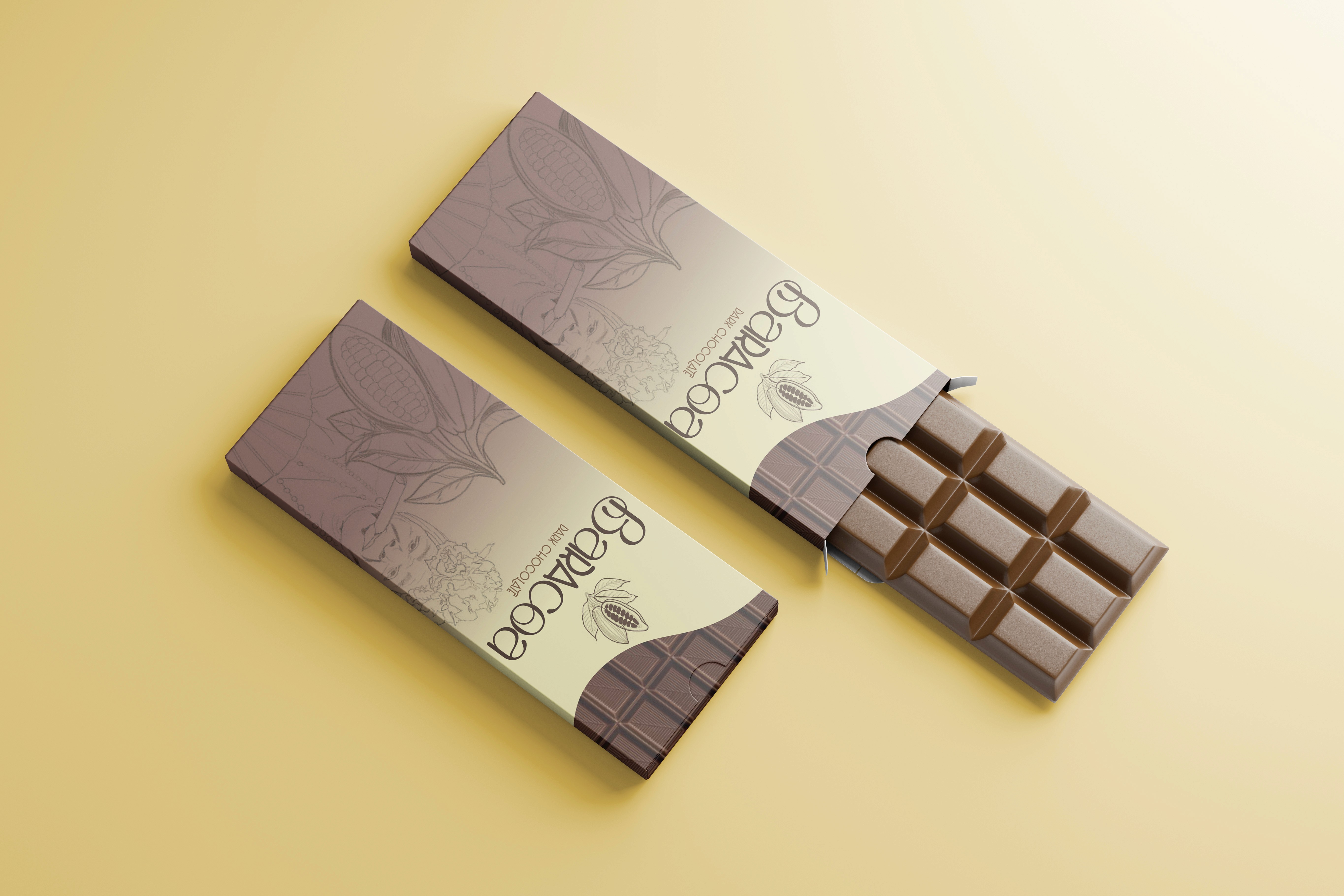 Earthy tones and cocoa illustrations highlight the product’s natural origin, while the textured top and custom logo create a refined, artisanal feel.