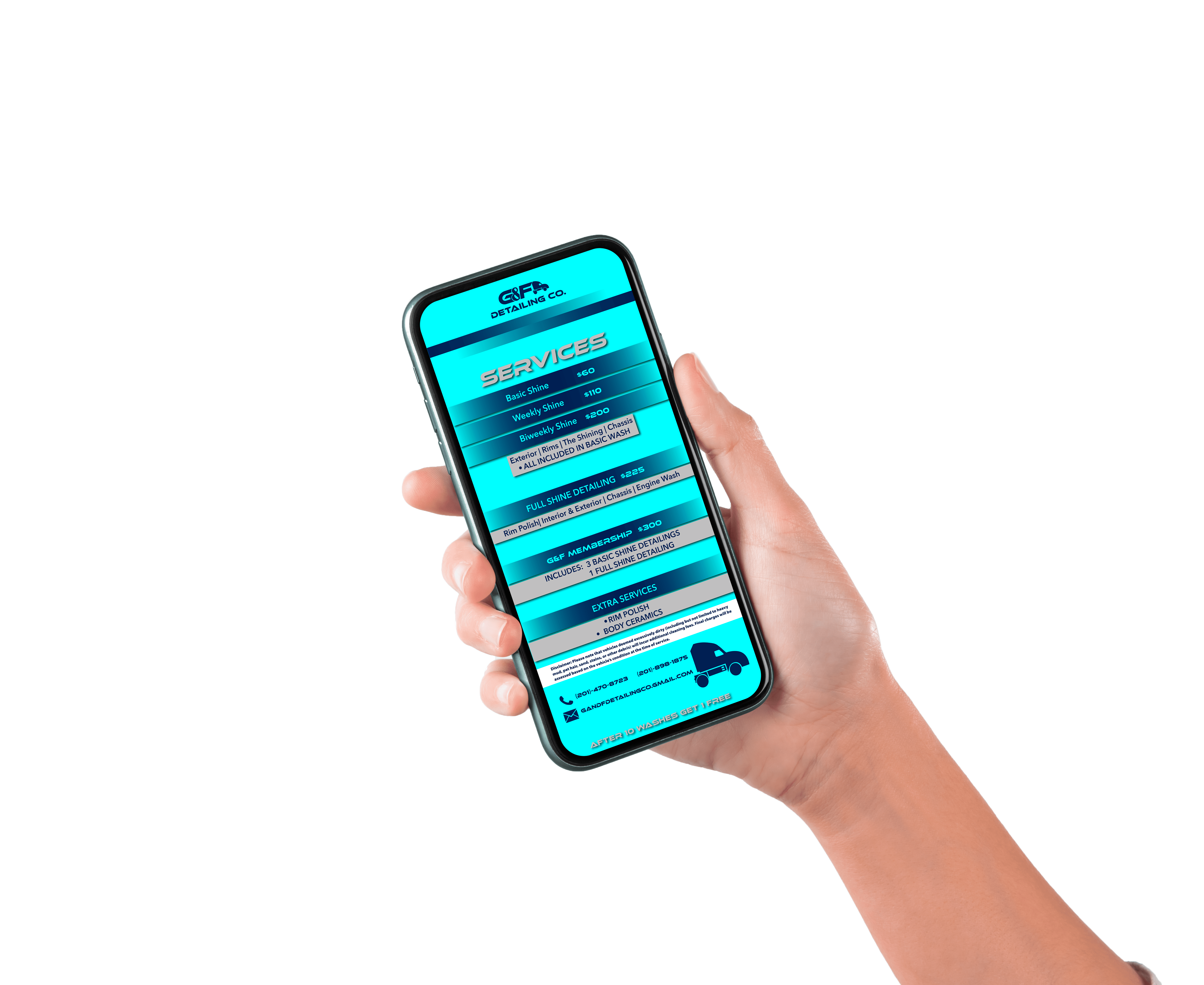 The Visual Identity of G&F Detailing Co. combines the initials with the silhouette of a truck to represent strength, movement, and specialization in the industry.