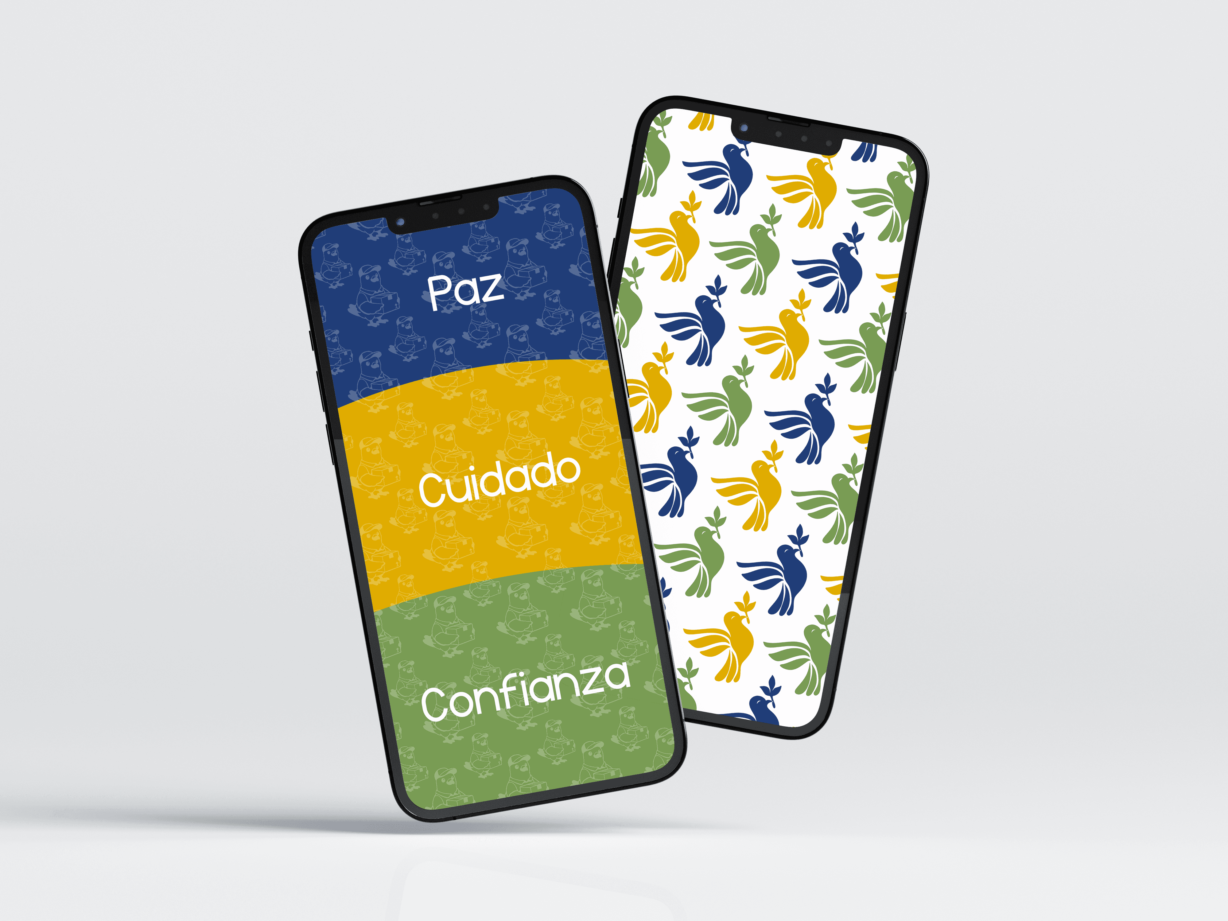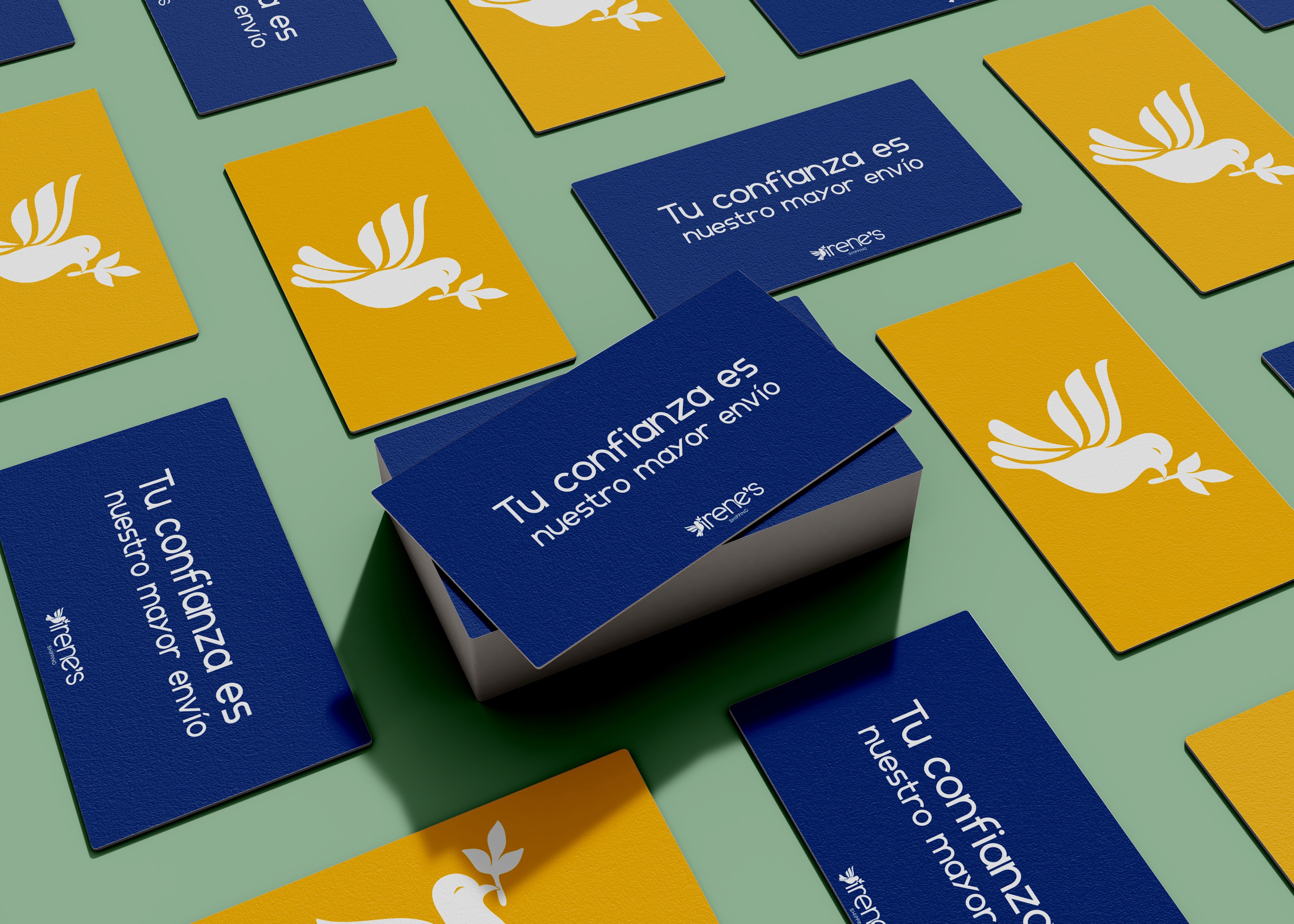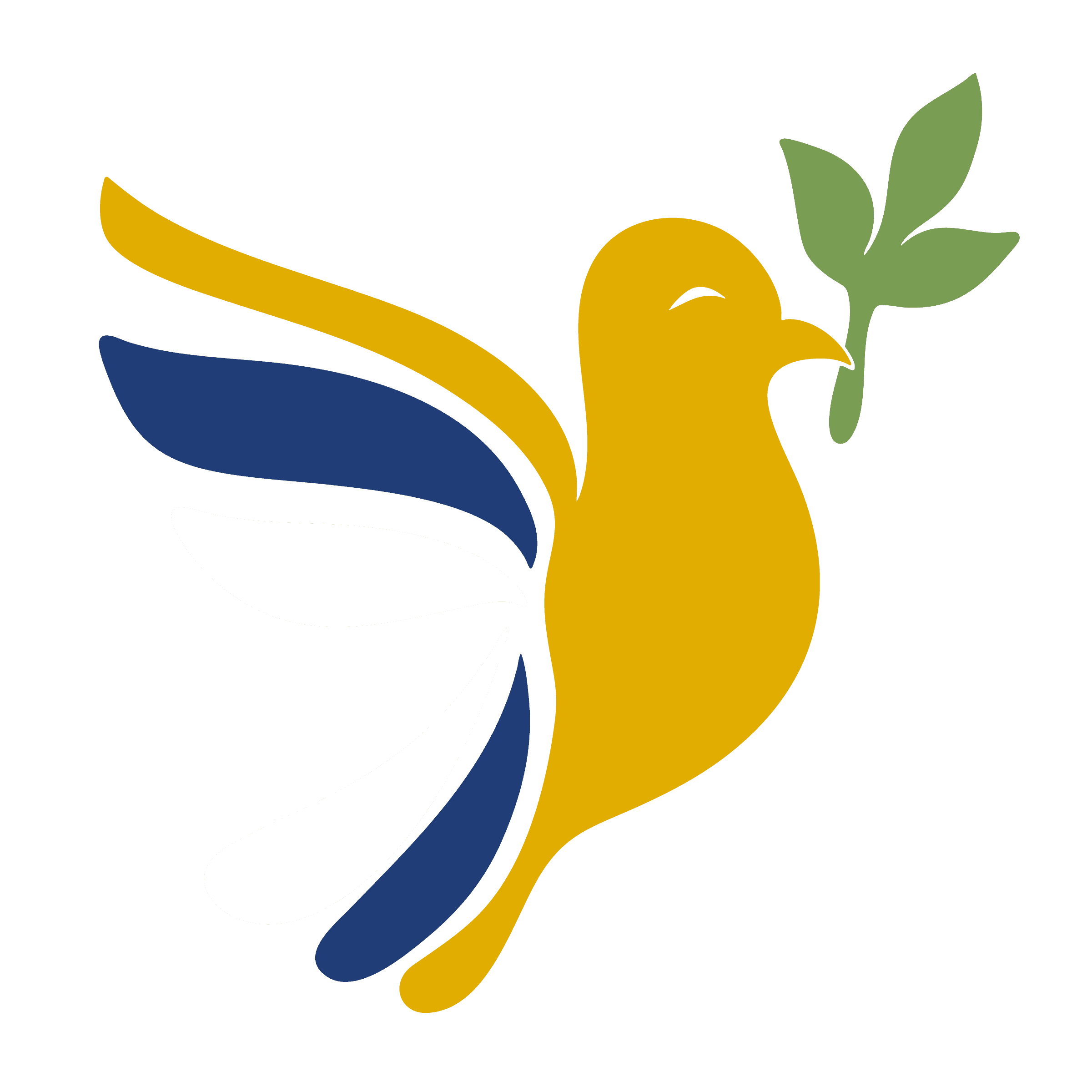 A dove with an olive branch symbolizes peace, care, and trust. Its flight represents freedom and cross-border service between Mexico and the U.S. Blue and white convey professionalism and approachability; yellow adds warmth and human value.