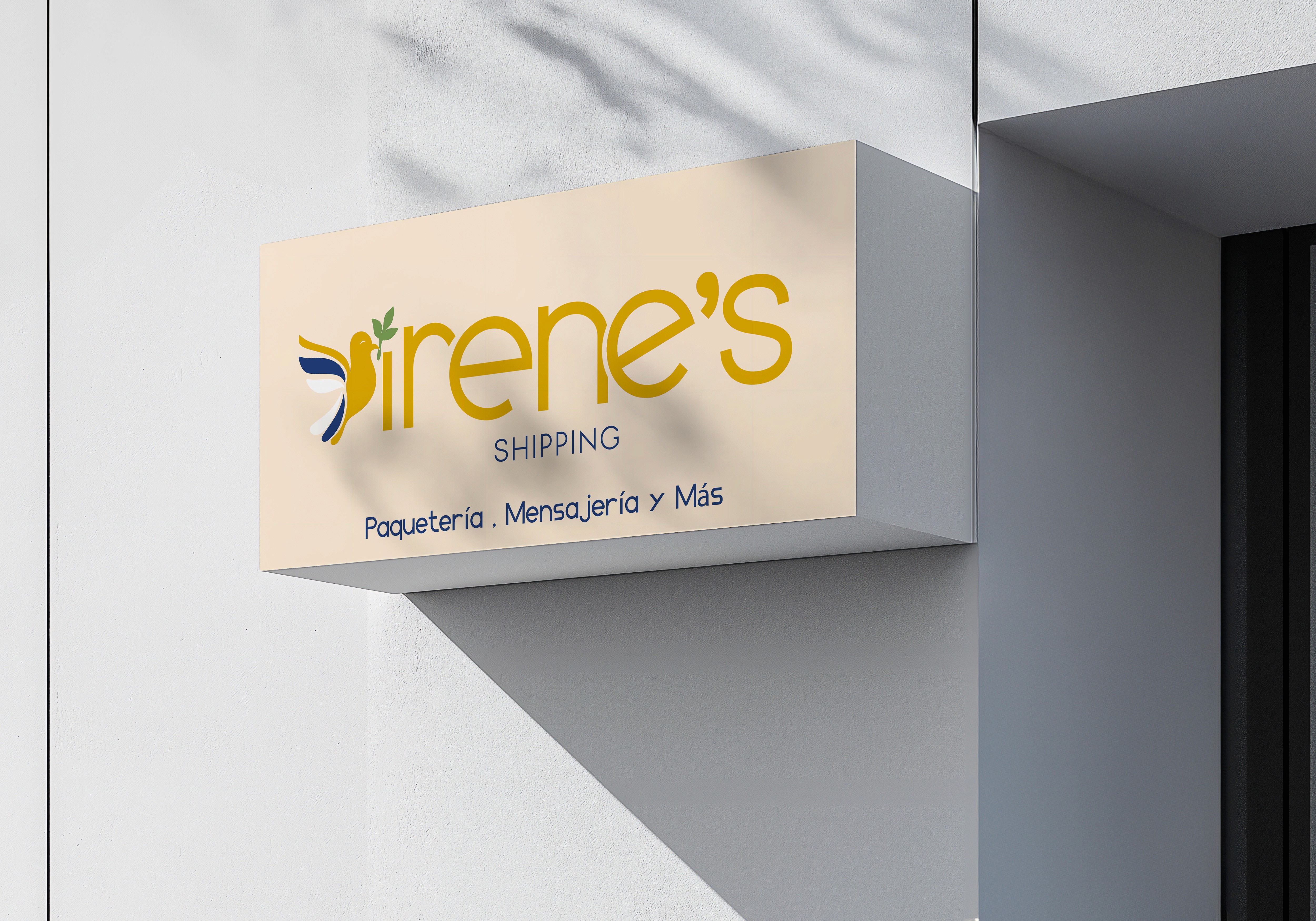 Rounded lowercase typography and the apostrophe suggest a friendly, personal brand. Irene’s delivers not just packages, but emotions, support, and well-being.